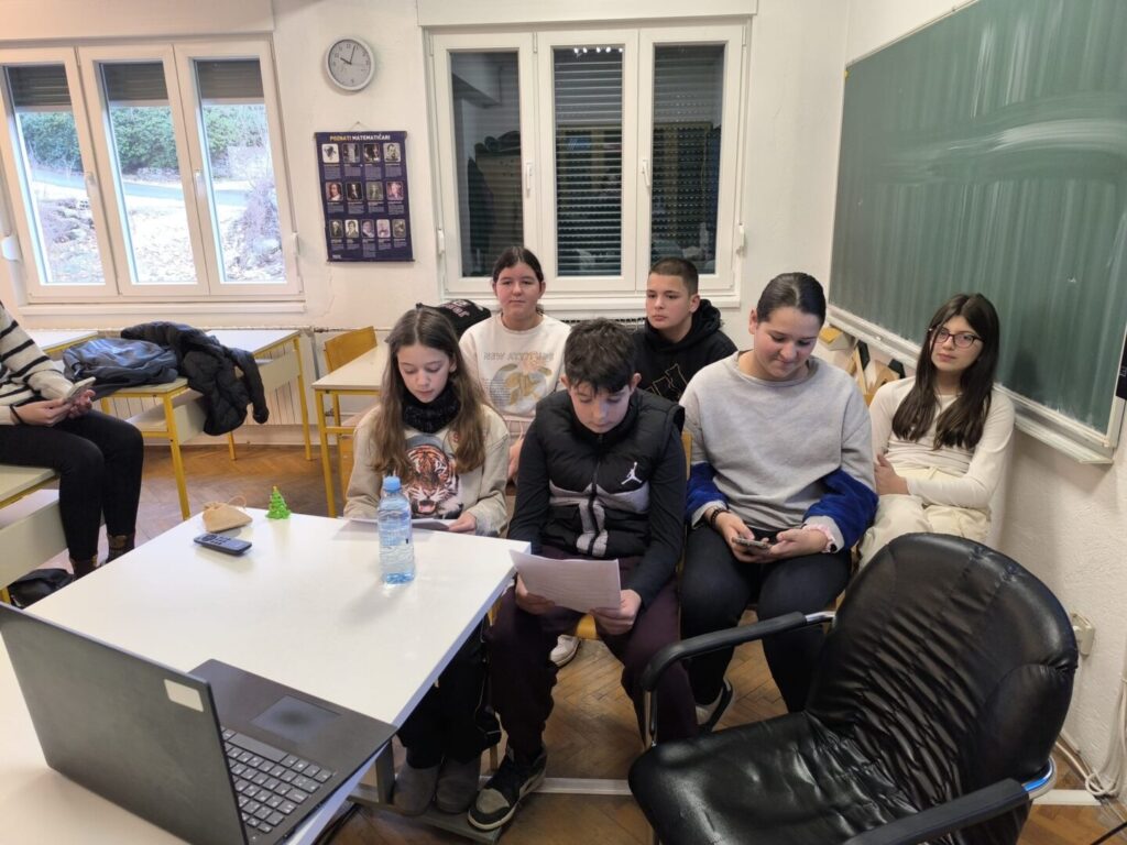Za aktivnost u prosincu 2025. imali smo suradnju u međunarodnim timovima na način da je troje učenika (Marija K., Luka M. i Barbara M.) dodijeljeno različitim timovima u kojima su im mentori drugi učitelji, dok je učiteljica Marina Crvelin dobila svoj tim sa još dvije učiteljice (Mirelom P. i Adisom K.) gdje su mentorirale druge učenike.