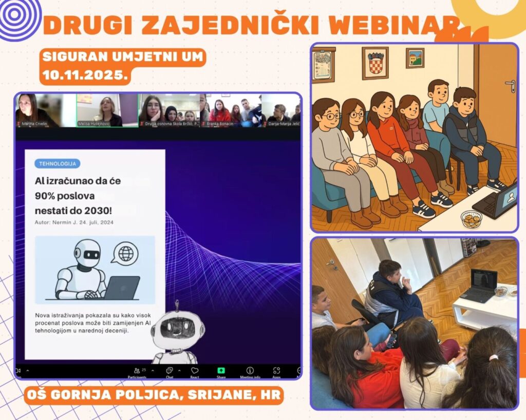10.11.2025. učenici 6.r. su sudjelovali na drugom zajedničkom webinaru (Siguran umjetni um) sa ostalim sudionicima projekta.