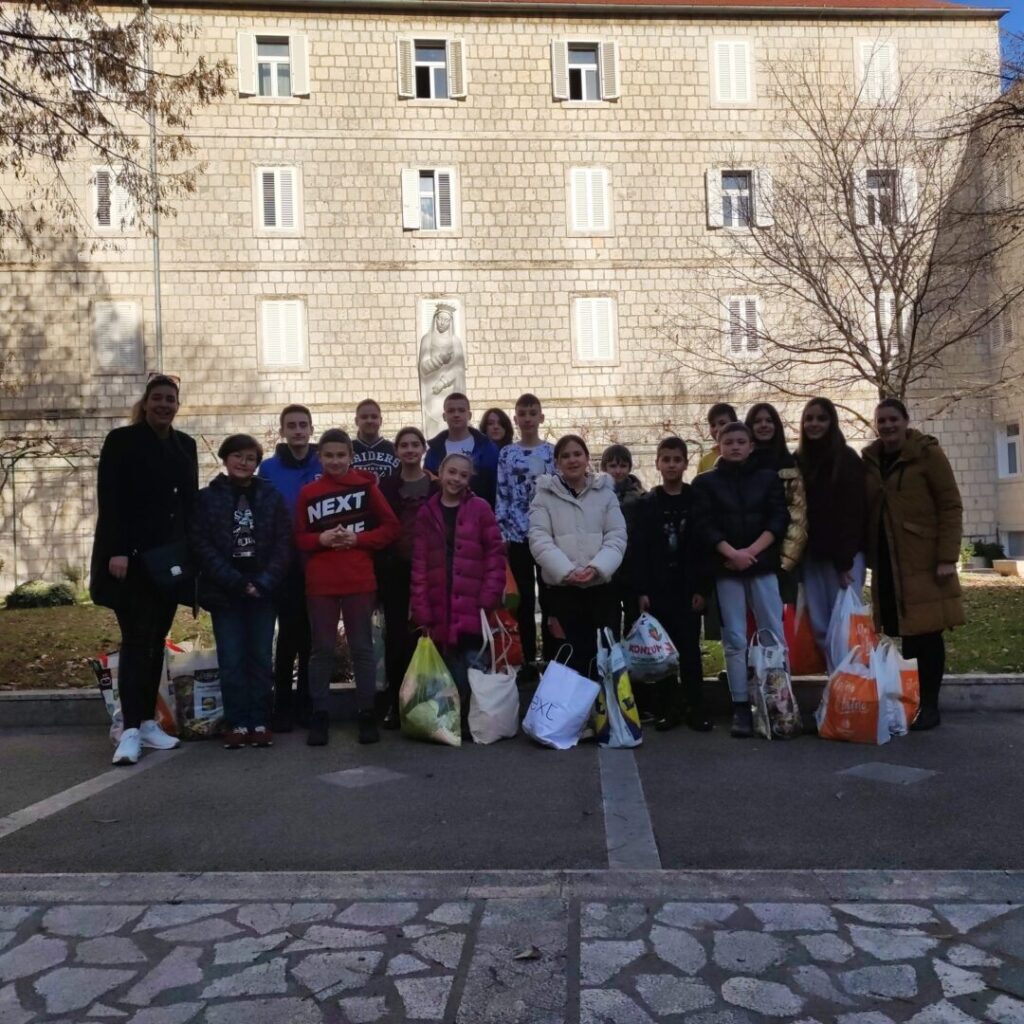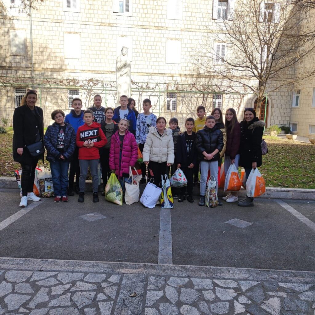 U želji da pomognemo onima koji nemaju, povodom božićnih blagdana u našoj školi se organizirala akcija u suradnji s Caritasom u kojoj smo prikupljali nekvarljive namirnice i higijenske potrepštine za Caritas u sklopu Župnog ureda u Sinju. Nakon što smo par dana prikupljali u utorak 20.12.2022. smo odnijeli to zajedno s učiteljicama informatike Ivanom Brlić, matematike Marinom Crvelin te učiteljicom vjeronauka Marinkom Žolo Marunicom. Pogledajte naše slike da vidite kako nam je lijepo bilo, a kako se dobro dobrim vraća, župnik nam je podijelio i slatke poklone. Na kraju smo se pomolili i zahvalili Gospi Sinjskoj na svemu što mi imamo.