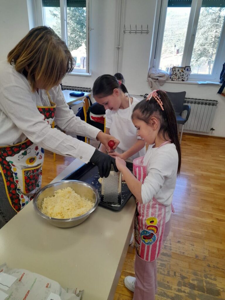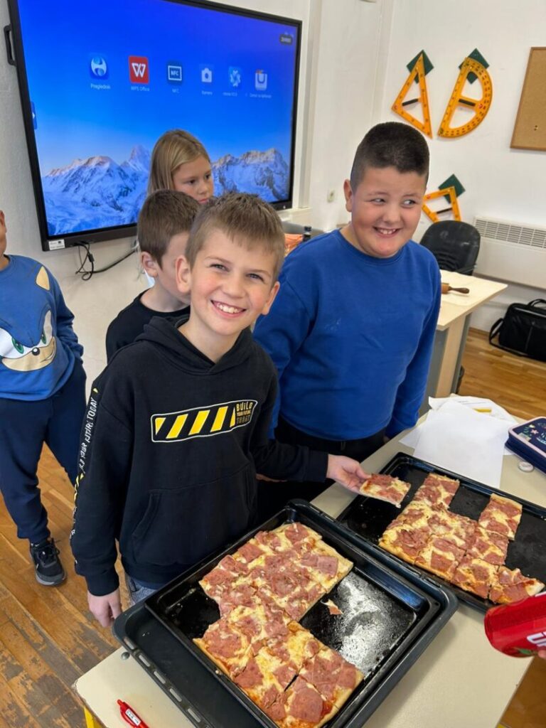Učenici razredne nastave s posebnom su radošću pripremili prigodan program koji je uključivao recitacije, igrokaze i pjesme posvećene kruhu, zahvalnosti i zajedništvu. Njihova vedrina i entuzijazam uljepšali su početak svakog dana. Nakon programa, učenici su se okušali u pravljenju pizze – sami su mijesili tijesto, birali sastojke i s nestrpljenjem čekali da se njihova pizza ispeče.