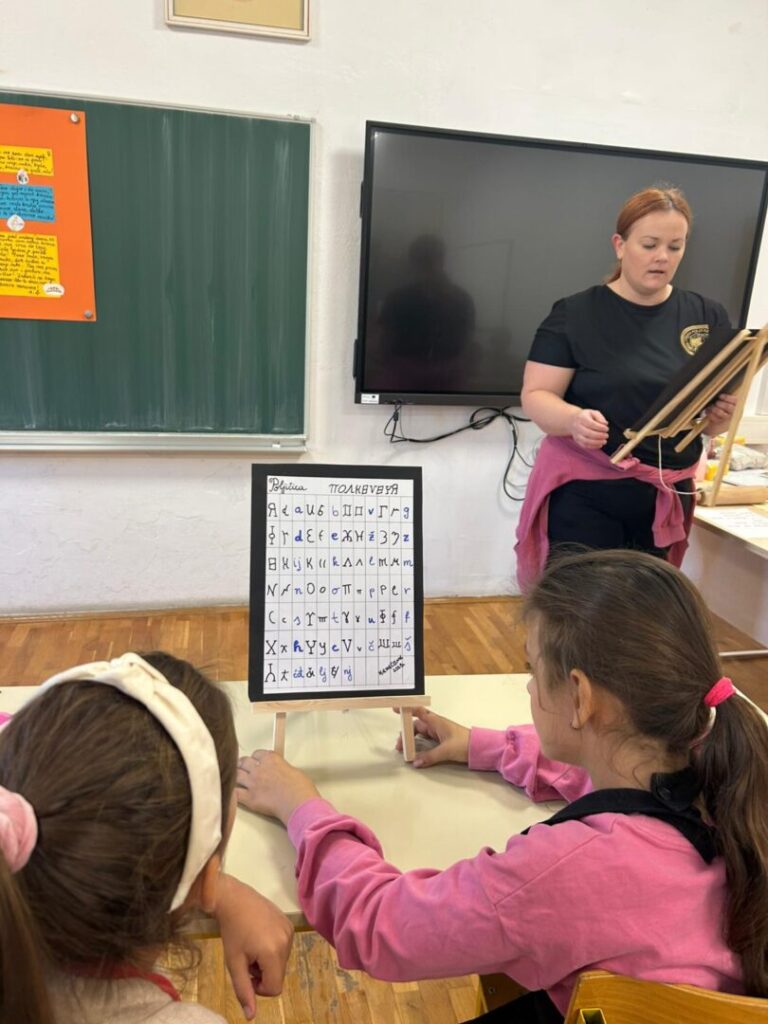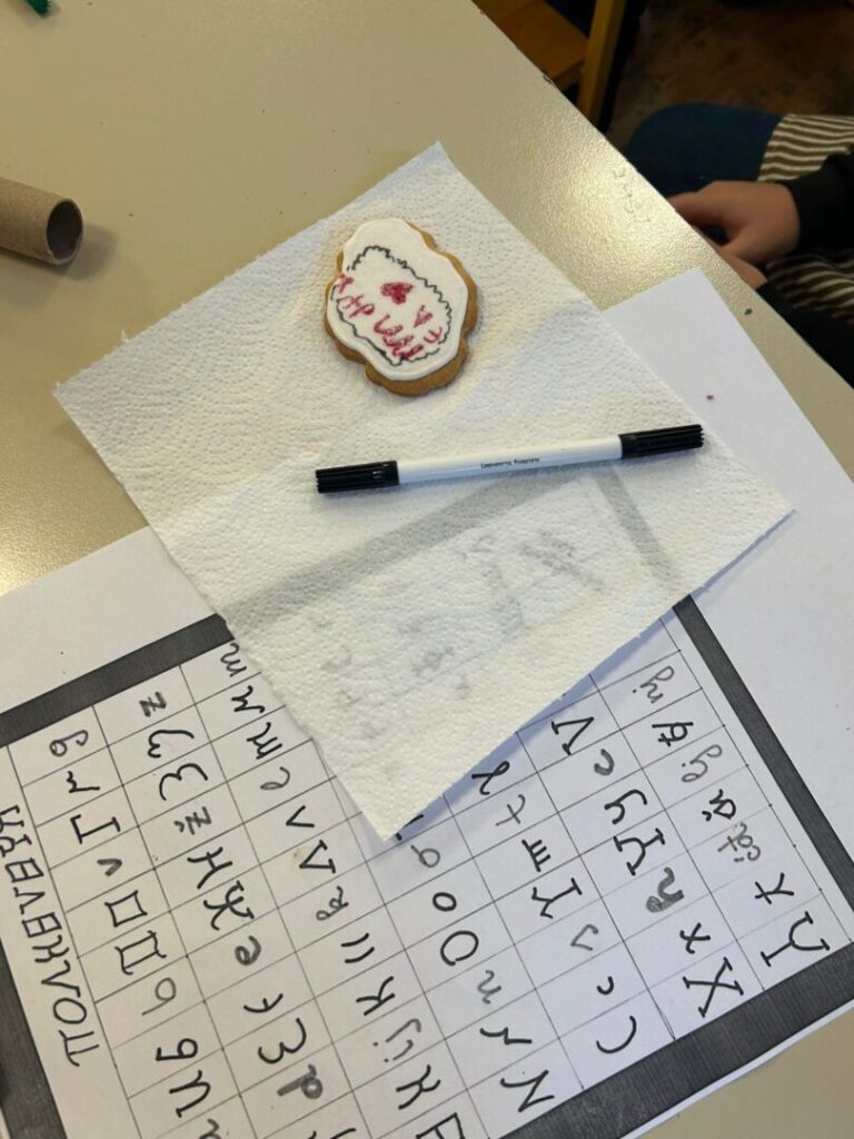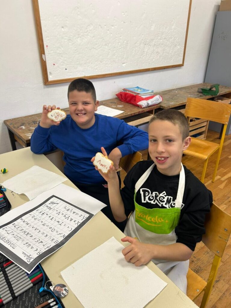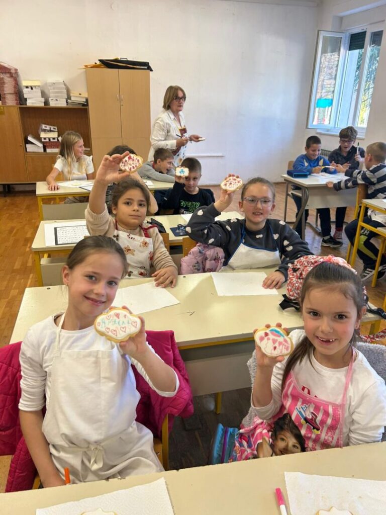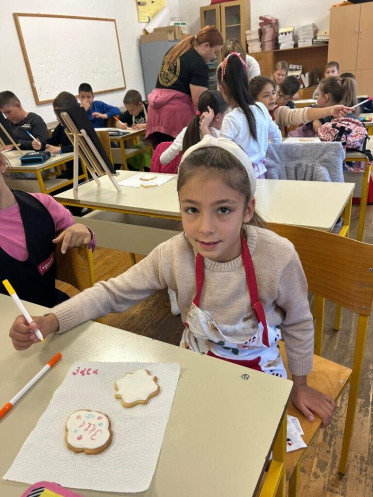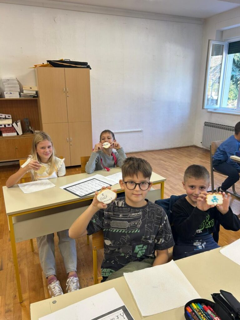 Dok se tijesto dizalo, školu je posjetila gospođa Katarina Mikas, koja je djeci pokazala kako se izrađuju tradicionalni medenjaci. Učenici su potom oslikavali medenjake poljičicom – starim pismom našeg kraja. Na taj su način spojili kreativnost s učenjem o kulturnoj i povijesnoj baštini Poljica, što je posebno obogatilo cijeli doživljaj.