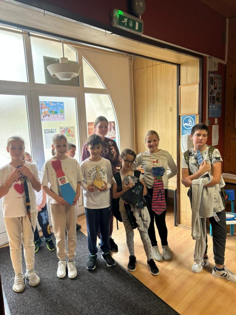Na dan obilježavanja, školom su zavladale šarene, zanimljive i maštovite kravate izrađene od tkanine, papira, recikliranih materijala, pa čak i prirodnih elemenata poput lišća i cvijeća. Učitelji i stručni suradnici činili su stručni žiri, koji je imao nimalo lak zadatak — među mnoštvom originalnih radova izabrati one najsadržajnije i najkreativnije.